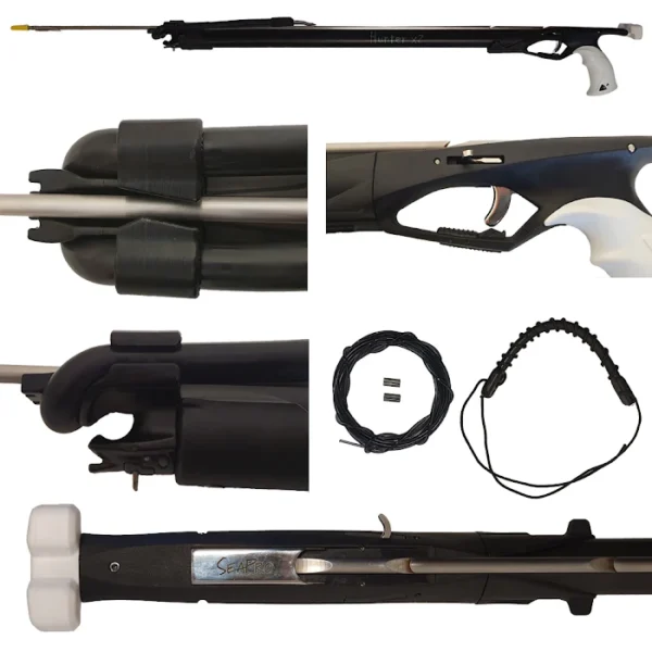 Vi introduserer Hunter X2 harpunen fra SeaPro. I harpunfiskeverdenen vil SeaPros innovasjon og eksemplariske kvalitet virkelig skille seg ut og gi dem et utmerket rykte. Hunter X2 harpunen er et produkt av omfattende forskning og utvikling. Ta ikke feil, dette er godt konstruerte harpuner. Kraftige, nøyaktige og slitesterke. Tilgjengelig i 3 størrelser som passer din jaktstil: 45 cm, 60 cm, 75 cm. Sirkulært 16 mm reaktivt bånd. 7 mm 17,4 PH-hakket Tahitian-skaft i rustfritt stål. Avtrekker med «myk» utløsning. Avtrekkermekanisme laget av rustfritt stål. Lineutløser; rustfritt stål. Ladekolbe. Rask målsøking med ultralavprofilmunning. Ønskebein i rustfritt stål. Alt er klart til bruk, inkludert støtdemper. Ergonomisk designet håndgrep pluss standardgrep inkludert.