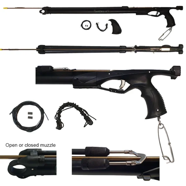 SeaPro Hunter X3 harpunen er designet med en elliptisk ramme som er laget av en slitesterk aluminiumslegering i flykvalitet. Avtrekkermekanismen er laget av tungmetall 350 rustfritt stål. Håndtaket er ergonomisk for høyrehendte. Ekstra standardhåndtak inkludert. Ladekolben er laget av et mykere materiale som gjør den enklere å lade. Det er en krok på bunnen av håndtaket for feste av snøret eller en forsterket karabinkrok. En av hovedfunksjonene til SeaPro Hunter er den lukkede/åpne munningen i multigummi som kan endres fra lukket til åpen uten verktøy. Elliptisk løp i aluminiumslegering i flykvalitet. Skaftføring. Ergonomisk håndtak pluss ekstra standardhåndtak. Ny avtrekkermekanisme i tungmetall. Brystladepute. Håndtak med krok for feste av snøre eller forsterket karabinkrok. Lukket/åpen multibåndsmunning 2×16 mm svarte over gule bånd med leddbein for overlegen kraft. Støtdemper i gummi. Skaft: 6,5 mm herdet, hakket skaft med en enkelt mothake og en tri-cut-spiss.